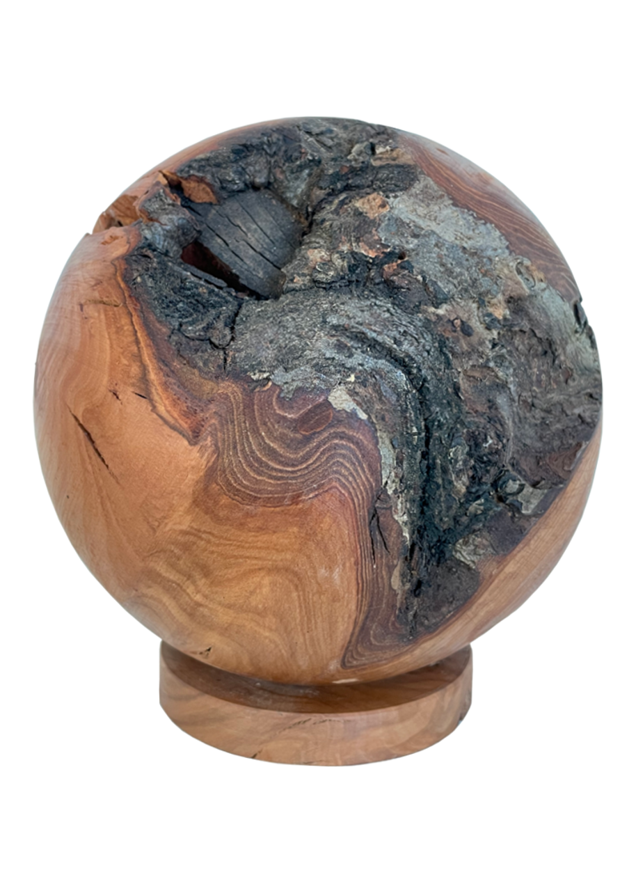 Gefertigt aus der Veredelungsknolle eines Apfelbaumes mit sichtbaren Teilen der Rinde.
